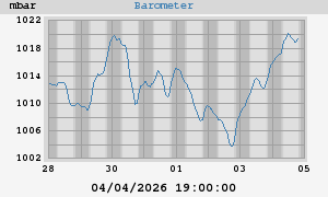 - Maxima d'aujourd'hui: 1020,3 mbar à 11:56:00